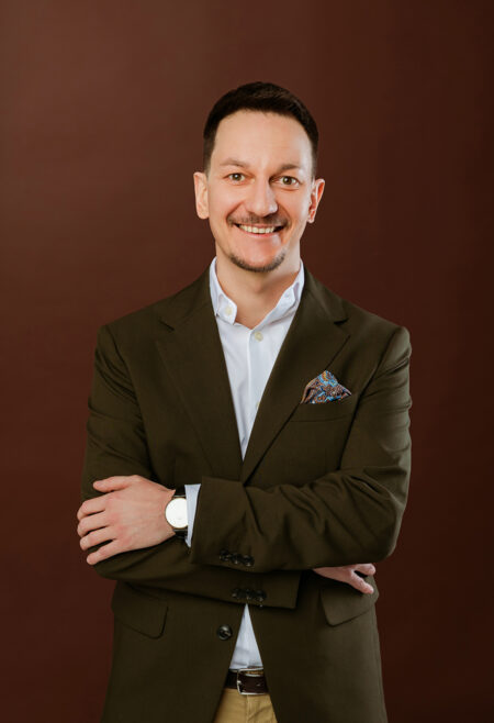 Jest absolwentem prawa na Uniwersytecie Kardynała Stefana Wyszyńskiego w Warszawie. Ukończył szkolenie z mediacji organizowane przez Centrum Mediacji Izby Adwokackiej w Warszawie. Pracuje w języku polski i angielskim.